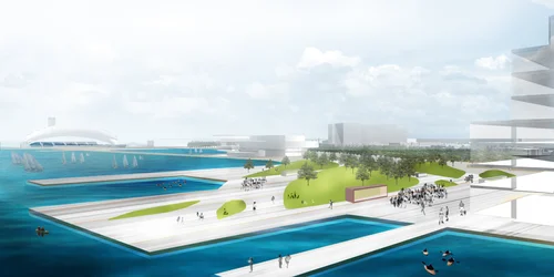 The masterplan study for the Under Armour fitness apparel company looked at the relocation and expansion of the company's headquarters on the Baltimore harbor as the anchor to a larger scale redevelopment centered around fitness recreation, sporting events, and the reinvigoration of the waterfront as a dynamic public space.